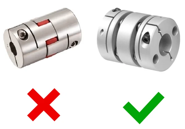 La conception ULTIMATE Bee utilise des accouplements à double diaphragme, qui sont spécifiquement conçus pour les vis à billes, contrairement aux accouplements à mâchoires (jaw couplings).