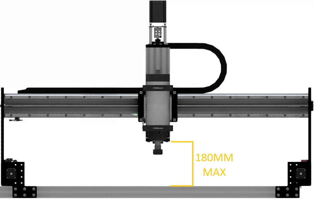 La machine offre 180 mm d'espace de travail sur l'axe Z pour maximiser le potentiel de travail. Cela facilite le fraisage de grandes pièces de bois, de plastique ou d'aluminium, ou l'ajout d'un axe rotatif.